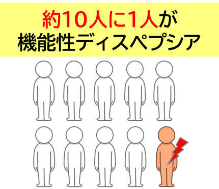 日本では約10人に1人が機能性ディスペプシアであるといわれています。