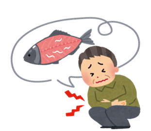 症状は、食べてから数時間~十数時間で現れ、激しいみぞおちの痛み、吐き気、嘔吐などがみられます。また、蕁麻疹や呼吸困難などのアレルギー症状、アナフィラキシー症状が現れる場合もあります。